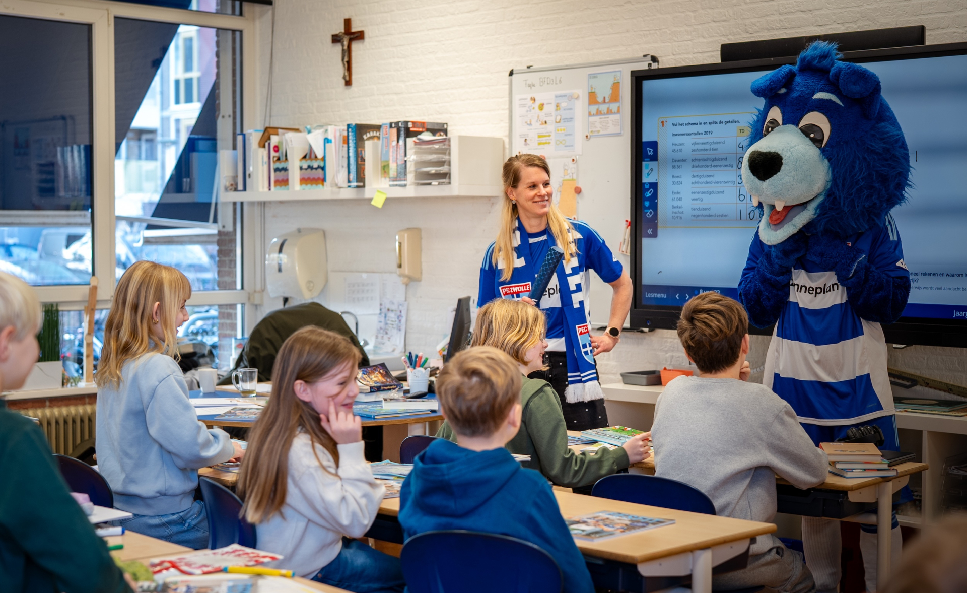 Maandag was de start van Leesfit 2026. Leesfit is een leesbevorderingsproject waarin kinderen uit groep 5, 6 en 7 (speciaal onderwijs) op positieve wijze gestimuleerd worden om veel te lezen. Met hulp van spelers en speelsters van PEC Zwolle gaan kinderen de komende tijd aan de slag met lezen, boeken en leesbevorderende activiteiten. Het plezier in lezen staat centraal.