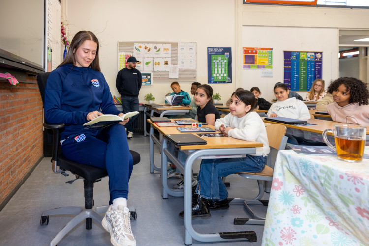 Maandagochtend negen uur was het muisstil in de klaslokalen. Dit keer klonk niet de vertrouwde stem van de juf of meester door het klaslokaal, maar die van bekende gezichten van televisie en sociale media. De spelers en speelsters Koen Kostons, Damian van der Haar, Thomas Buitink, Hanna Huizenga, Zoë Zuidberg namen uitgebreid de tijd om voor te lezen in de klas. Ook hoofdtrainer Henry van der Vegt en keeperstrainer en tevens oud-speler Diederik Boer bezochten maandag een basisschool.
